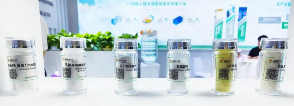 钙、铁、锌、镁营养补充剂,维生素类等。明星产品有富马酸亚铁、葡萄糖酸锌、柠檬酸钙、柠檬酸镁、甘氨酸镁。