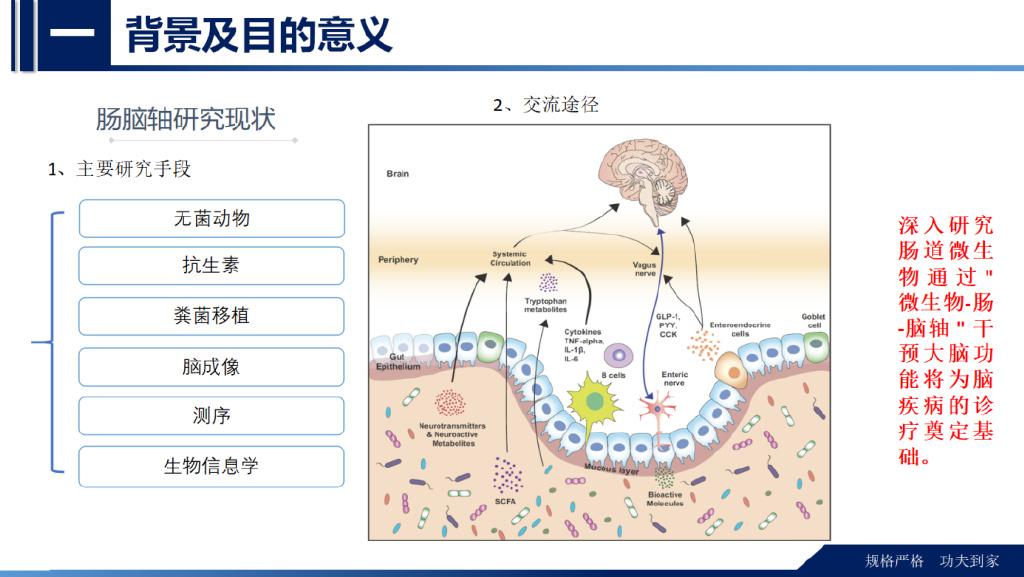此次分享中的提到的肠脑轴是一种胃肠道和中枢神经系统之间的双向通路调节。肠道菌群和宿主免疫代谢系统之间的复杂相互作用会影响与其他器官相关的身体功能,他们之间形成“轴”。肠道以及肠道菌群与各个器官的对话交流机制,即“肠道-器官轴”,在维持各个器官的健康方面变得越来越重要。